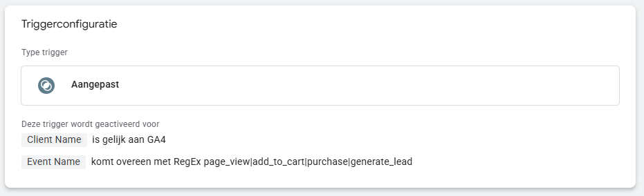 Kies de grijze optie Aangepast als trigger configuratie.