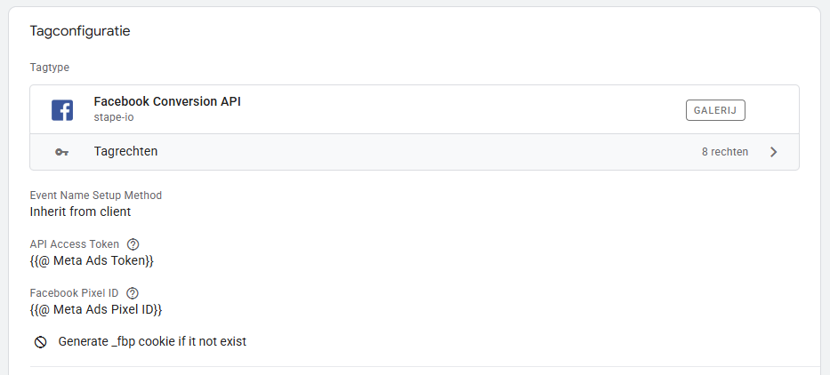 Kies de Facebook Conversion API template als tagconfiguratie.