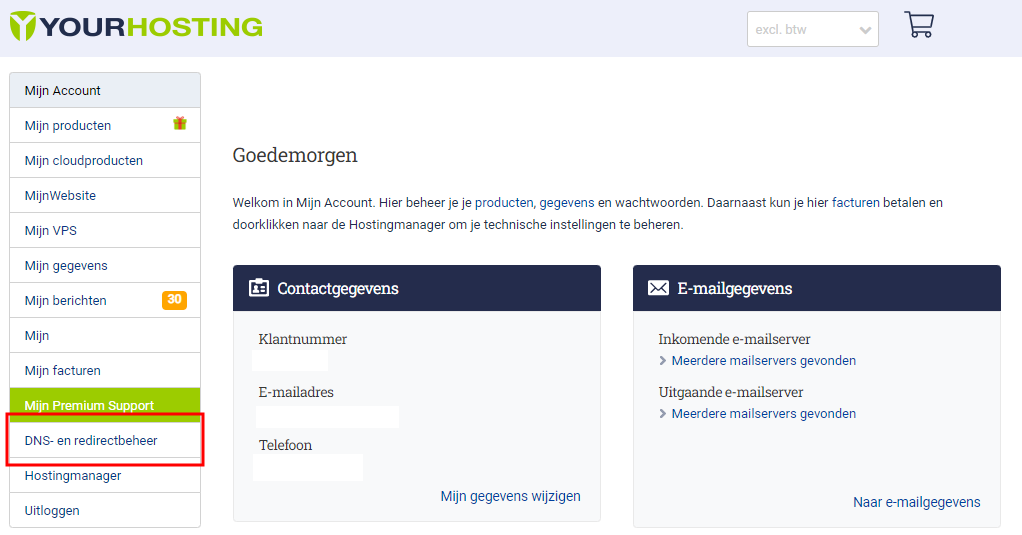 Klik op ‘DNS- en redirectbeheer’ in het menu.