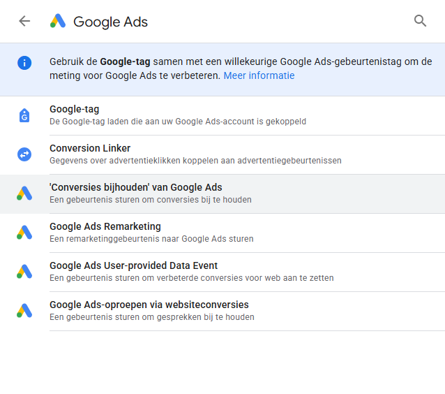 Google Ads conversietag instellen op de GTM web container