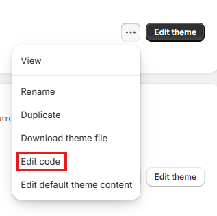 Bij je actieve theme klik je op de drie puntjes en daarna op Edit code