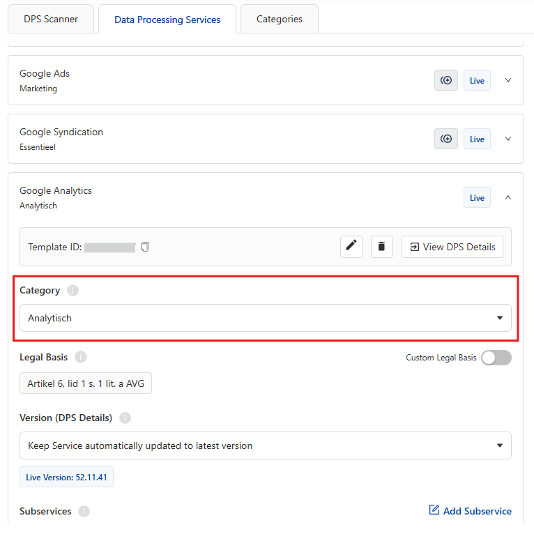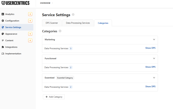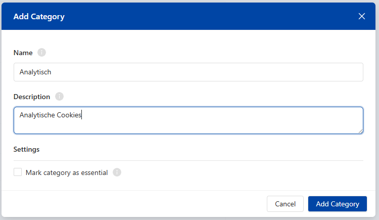 Maak een eigen categorie aan. Noem deze categorie 'Analytisch' als je UserCentrics in het Nederlands staat, en 'Analytical' als je UserCentrics in het Engels staat.