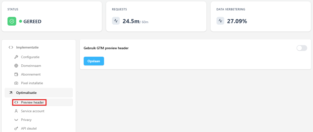 Wanneer je klaar bent met debuggen van de live requests op je server container, vergeet dan niet om de Gebruik GTM preview header in trytagging weer uit te zetten en op te slaan!