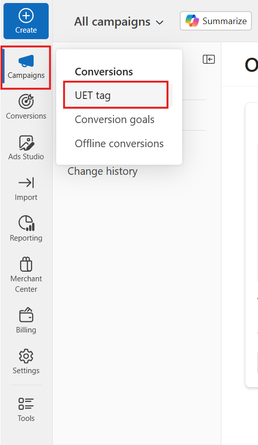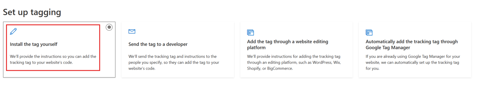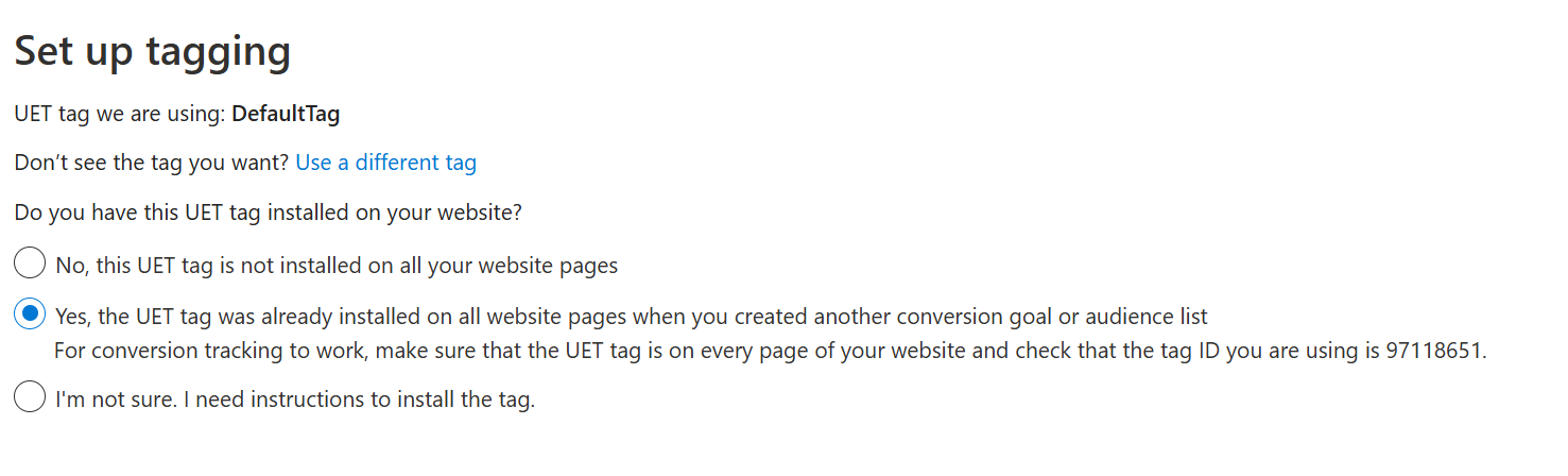 Heb je hier al een UET Tag? Gebruik dan de aangemaakte UET Tag ID en ga door naar stap 6.