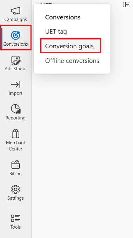 Ga naar 'Conversions' en daarna naar 'Conversion Goals'.
