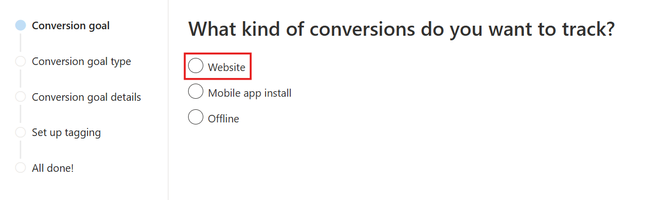 Bij het conversiedoel selecteer je het doel van je conversie, dit kan bijvoorbeeld een lead, een aankoop of een ander type conversie zijn. Dit hangt af van jouw eigen situatie en wat je instelt.