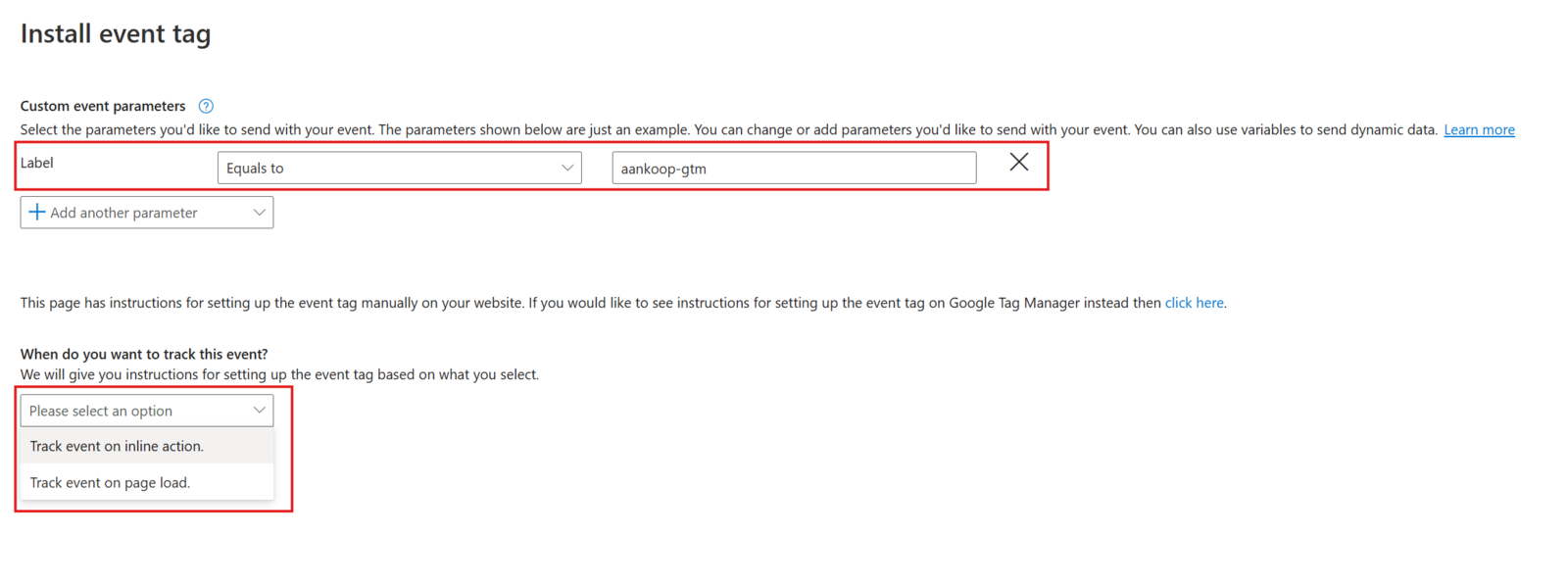 Geef bij Event label de precieze naam op die je ook in de laatste stap binnen Microsoft Ads hebt gegeven.