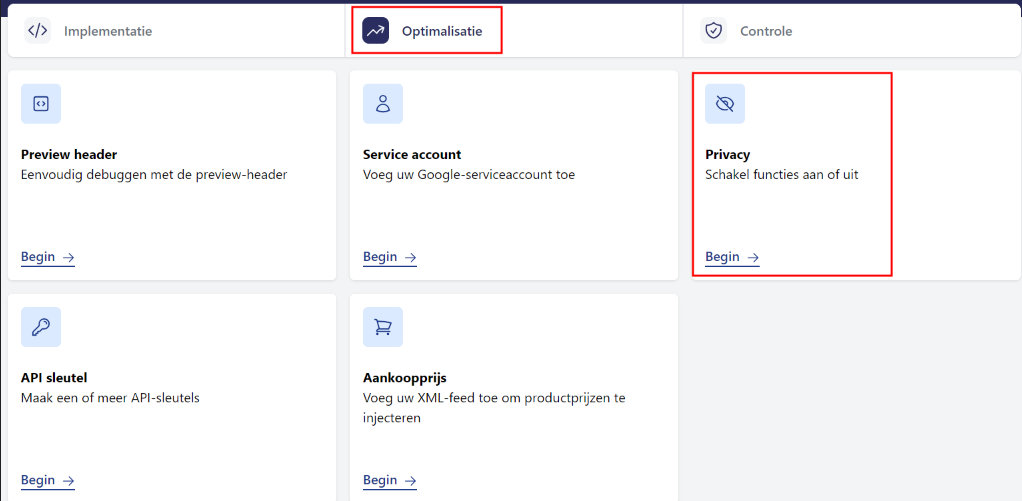 Ga onder het kopje 'Optimalisatie' naar de optie 'Privacy'.