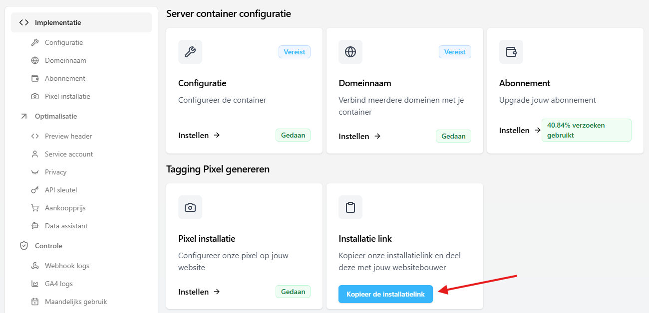 Met deze link kan de ontwikkelaar of beheerder de tagging pixel en de eventuele plugin/app/module eenvoudig toevoegen aan het CMS van de website.