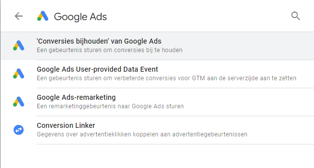 Kies Conversies Bijhouden van Google Ads als tag configuratie.