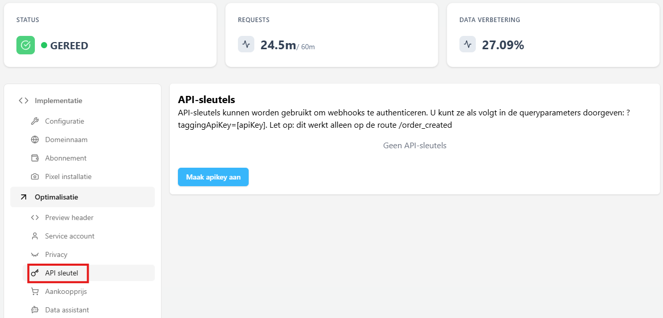 Om een API Key aan te maken klik je op de Maak apikey aan knop.