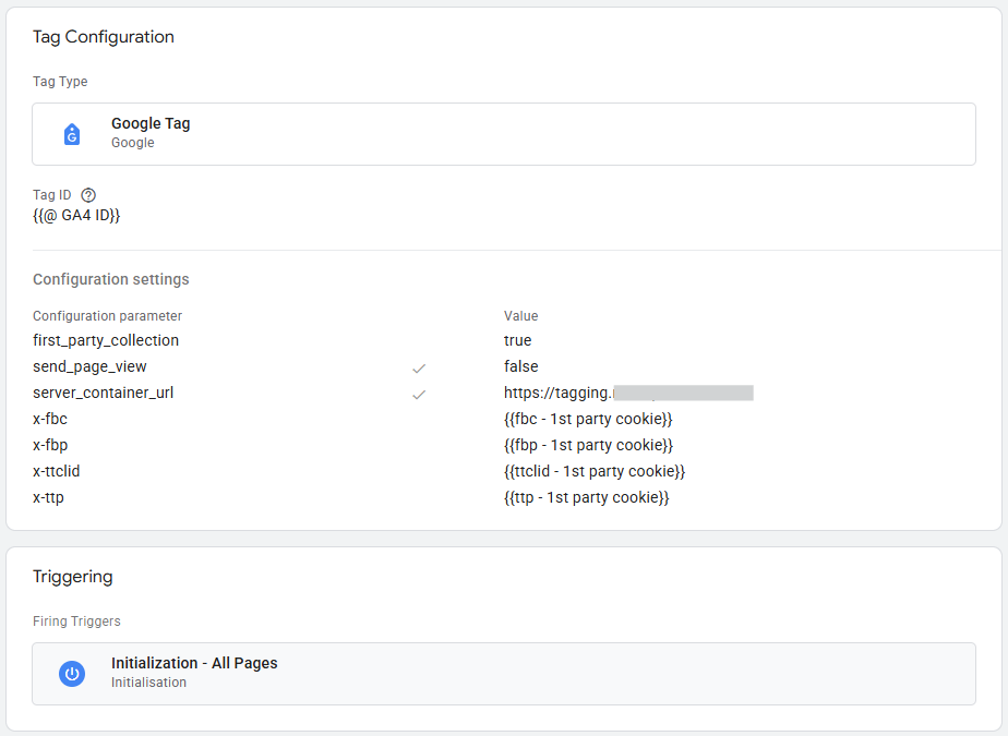 Open je Google Tag met de server-side configuratie parameters