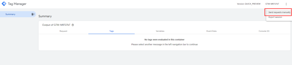 Open je GTM server container in de preview mode