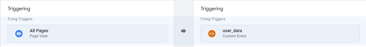 Ook kan je een triggergroep gebruiken. Een triggergroep evalueert de condities van twee of meer triggers als één trigger. De triggergroep activeert pas nadat alle geselecteerde triggers minstens één keer zijn geactiveerd. Dus als je in de trigger je bestaande trigger én de 'trytagging_user_data' trigger toevoegt, wordt de triggergroep pas geactiveerd als beide triggers plaatsgevonden hebben.