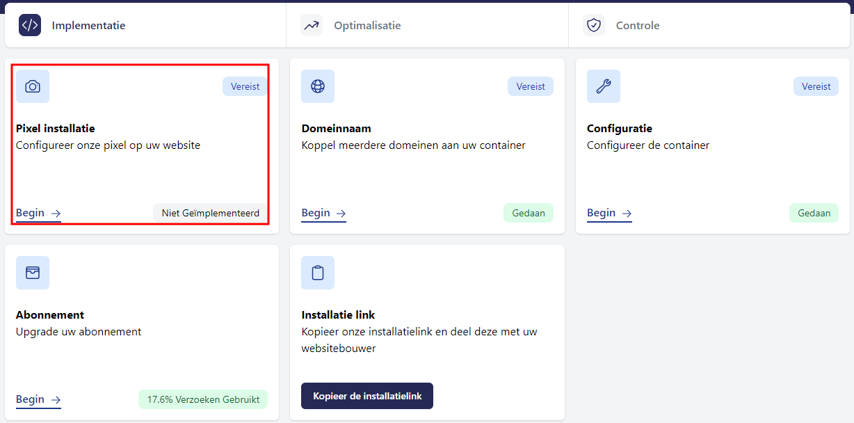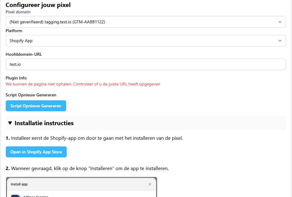 Als je nog niet eerder een tagging pixel hebt gegenereerd, volg dan de stappen om de rest van de tagging pixel te genereren. Heb je wel al de Shopify App ingesteld, skip dan naar stap 10 van dit artikel.