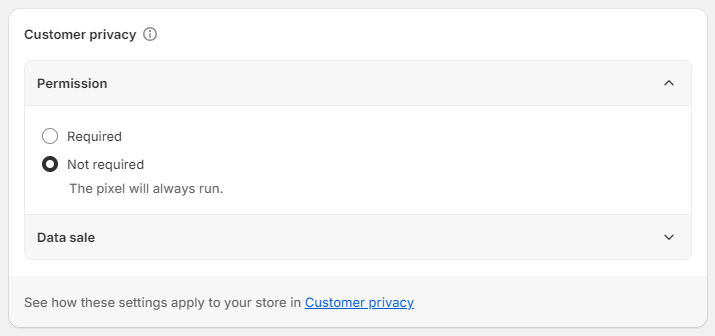 Onder 'Customer Privacy' klap je de 'Toestemmingen' instellingen open en selecteer je "niet vereist".
