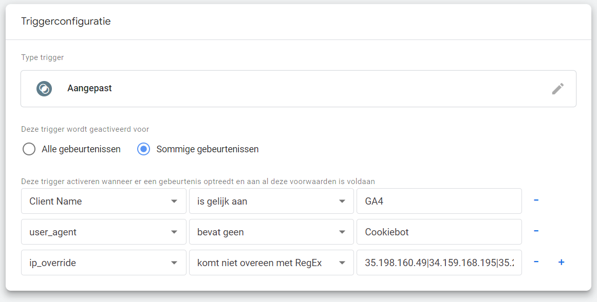 Voeg nog een voorwaarde toe aan de trigger: {{ip_override}} komt niet overeen met RegEx 20.223.9.138|34.107.102.47|34.141.10.24|34.159.86.126|34.159.168.195|34.159.247.222|35.198.78.207|35.198.137.6|35.198.160.49|35.246.143.2|35.246.191.14
