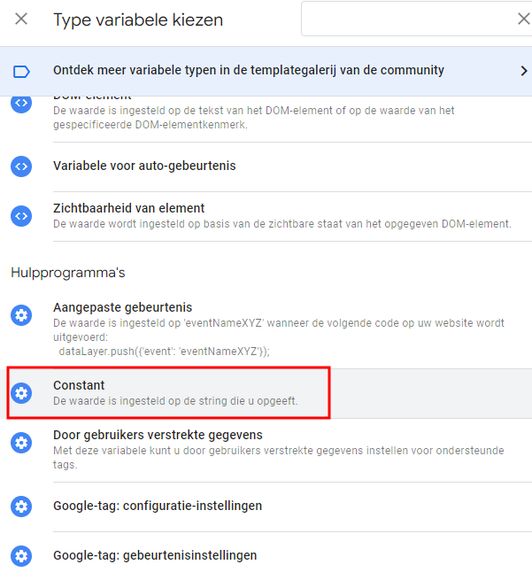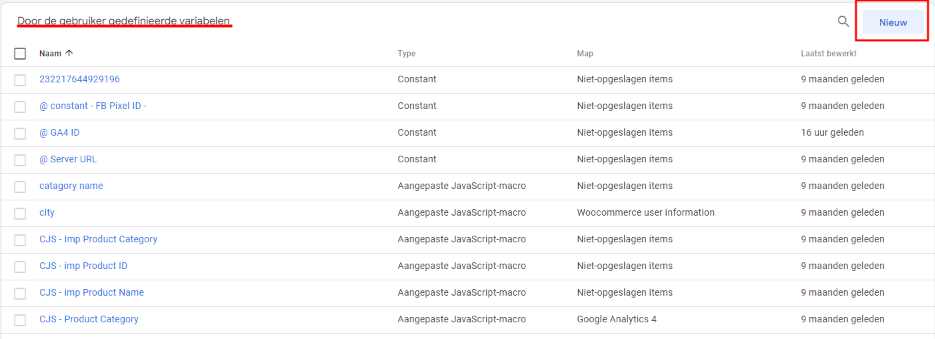 Om bij het aanmaken en aanpassen van GA4 event tags snel en secuur te werk te gaan, plaats je je GA4 Measurement-ID in een constante variabele. Hierdoor hoef je nooit meer je GA4 op te starten en dit ID in de GA4 admin te zoeken wanneer je weer een nieuwe tag aan wilt maken. Ook voorkom je hier spellingsfouten mee waardoor alle tags ingesteld staan voor hetzelfde Measurement-ID.