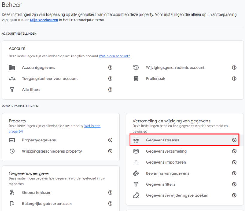 Klik op de gegevensstream, je ziet dan je Measurement-ID in de rechterbovenhoek. Kopieer deze.