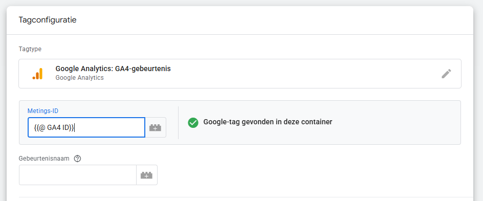 Heb je je GA4 Metings-ID nog niet in een variabele geplaatst? Volg dan eerst dit artikel.