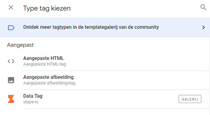 Klik op Tagconfiguratie en selecteer Aangepaste HTML.