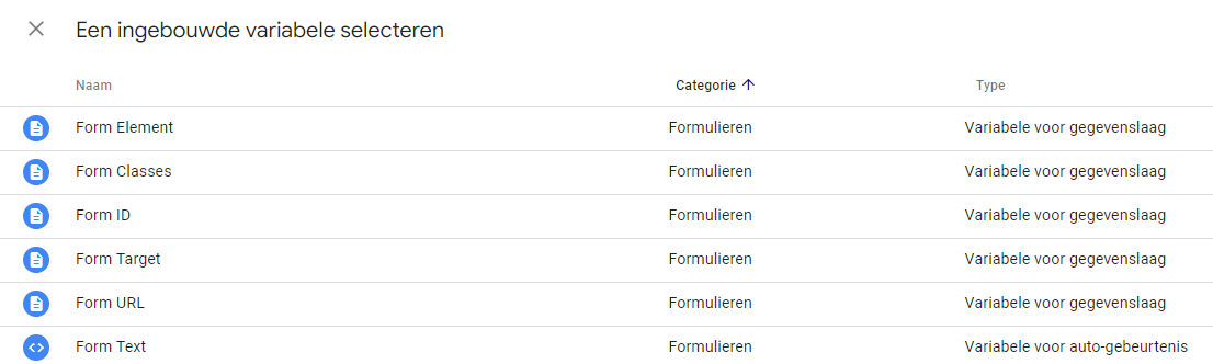 Deze optie is alleen beschikbaar als je zeker weet dat het formulier op je site een gtm.formSubmit activeert. Als dat niet het geval is, moet je mogelijk triggeren op basis van een bedankpagina of op basis van CSS-zichtbaarheid, afhankelijk van hoe het formulier is ingesteld.