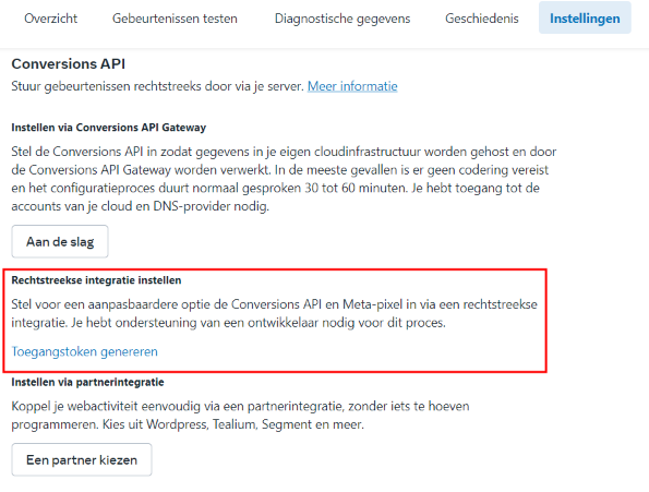Pixel ID en API Token vinden