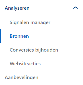 Klik op Analyseren in het linker menu en klik vervolgens op Bronnen.