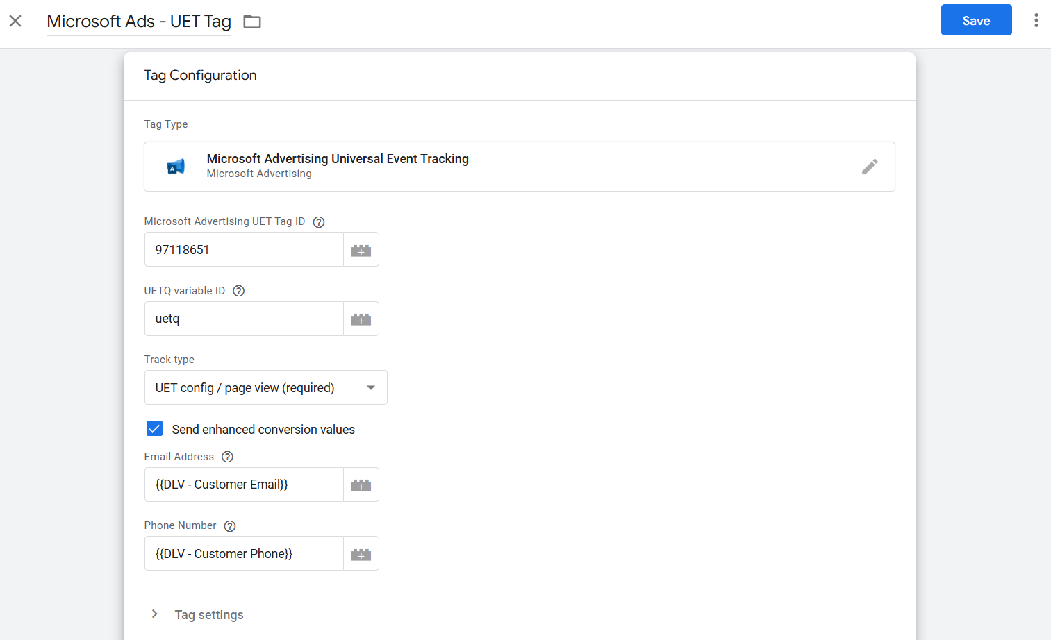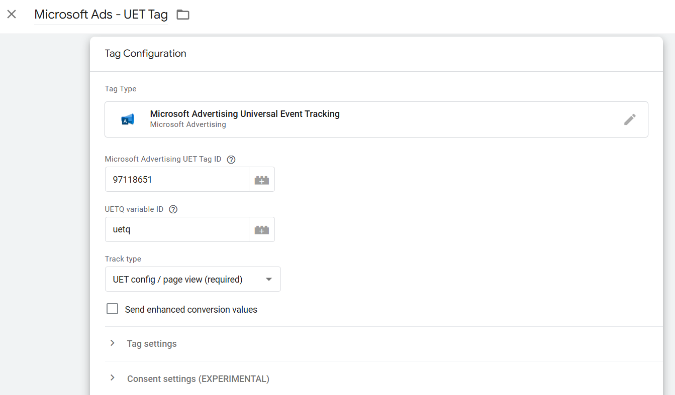 Open je UET Tag binnen de Google Tag Manager web container.