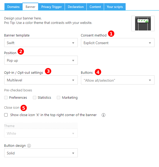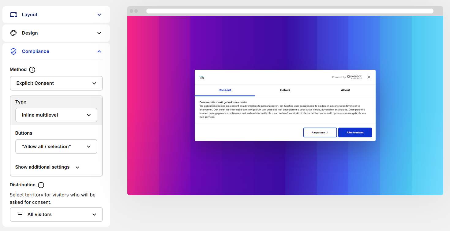 Selecteer Multilevel om ervoor te zorgen dat bezoekers consent kunnen geven en weigeren voor verschillende categorieën.