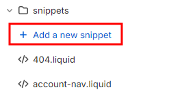 Open je Shopify thema code. Onder Snippets voeg je een nieuwe snippet toe.