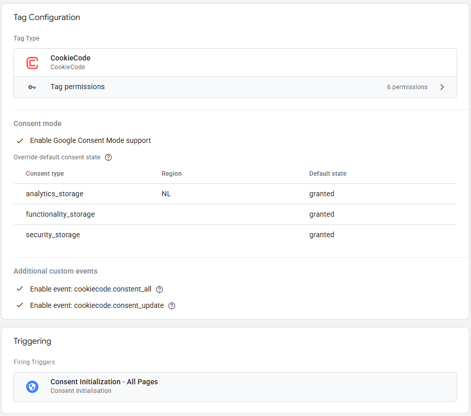 Geef deze tag de Consent Initialization trigger.