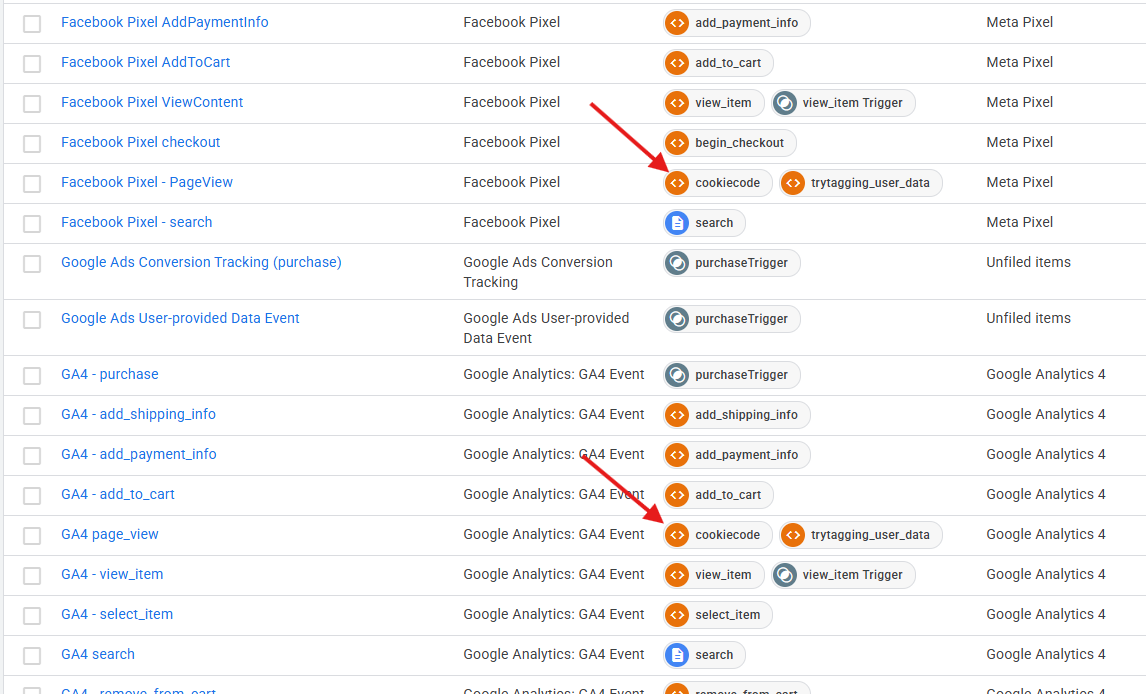 In je GTM web container staat er een Cookiecode tag ingesteld.
