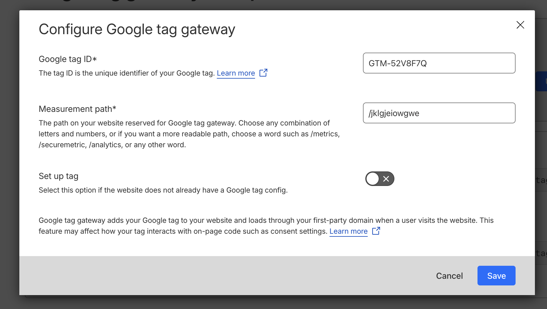 Google Tag Gateway (GTG) laadt je Google tags (GTM, GA4, Google Ads) via jouw eigen domein in plaats van via Google's servers. Dit zorgt voor: